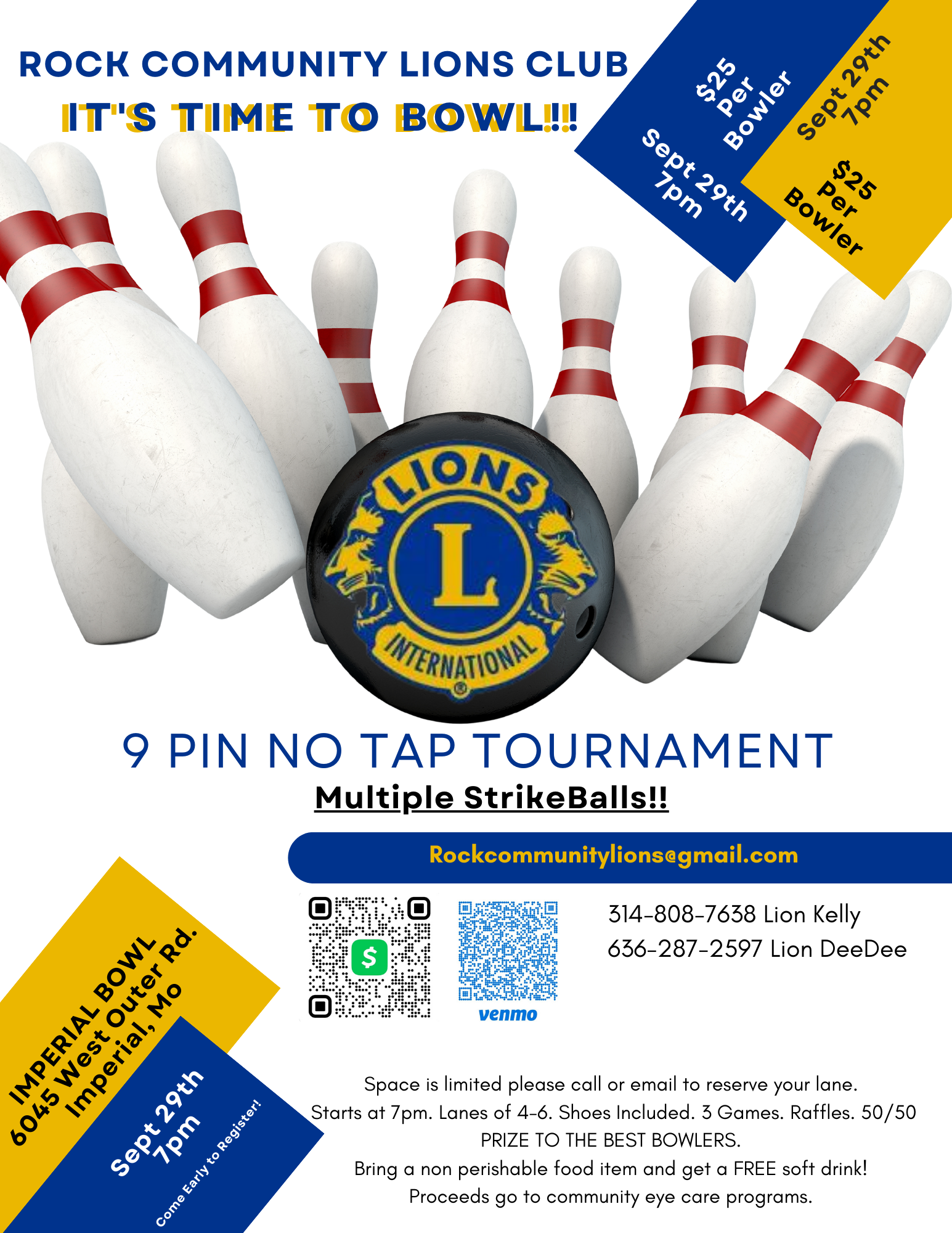 9 Pin No Tap Tournament - Rock Community Lions Club 7:00 pm